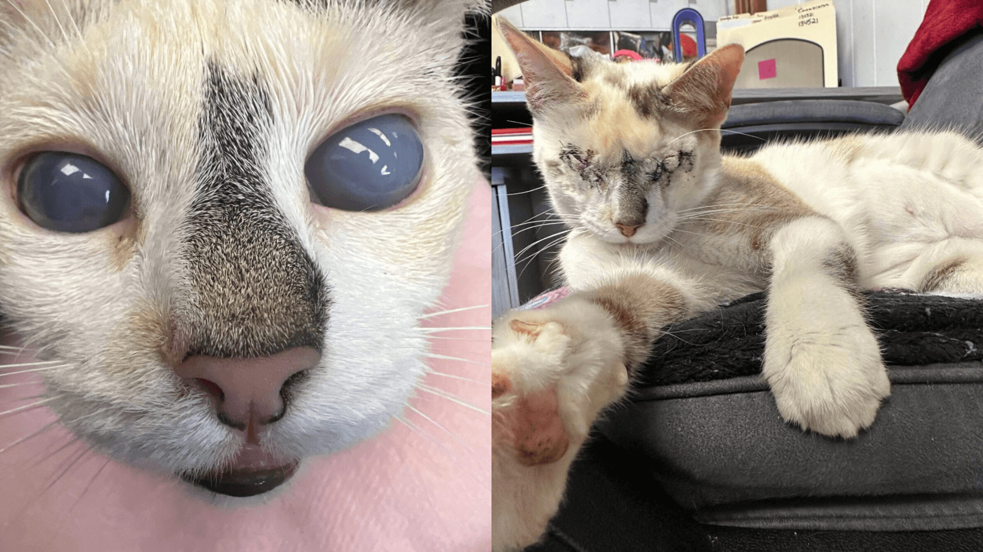 Whoever takes her home will get a stunning, sweet, and incredibly strong cat, one who has already proved that life without eyes can still be full of joy.