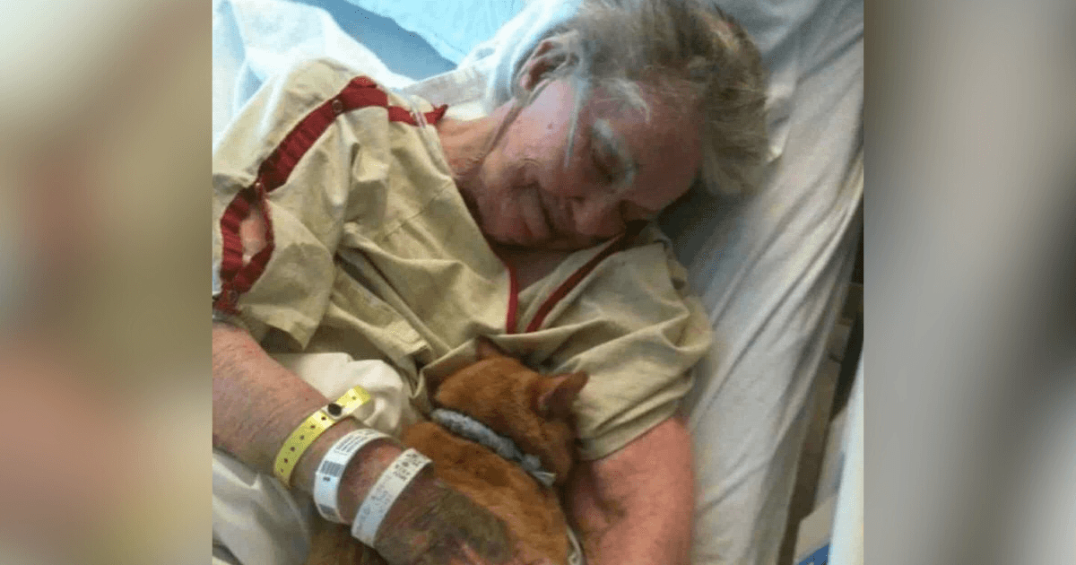 That moment was captured in a photo now seen by thousands. In it, she lies peacefully in bed, frail but smiling as Oliver curls up gently by her side.