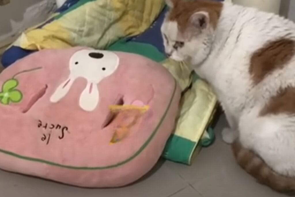 It was heartbreaking to watch. The couple had set up a cozy space just for him, away from their other two cats.