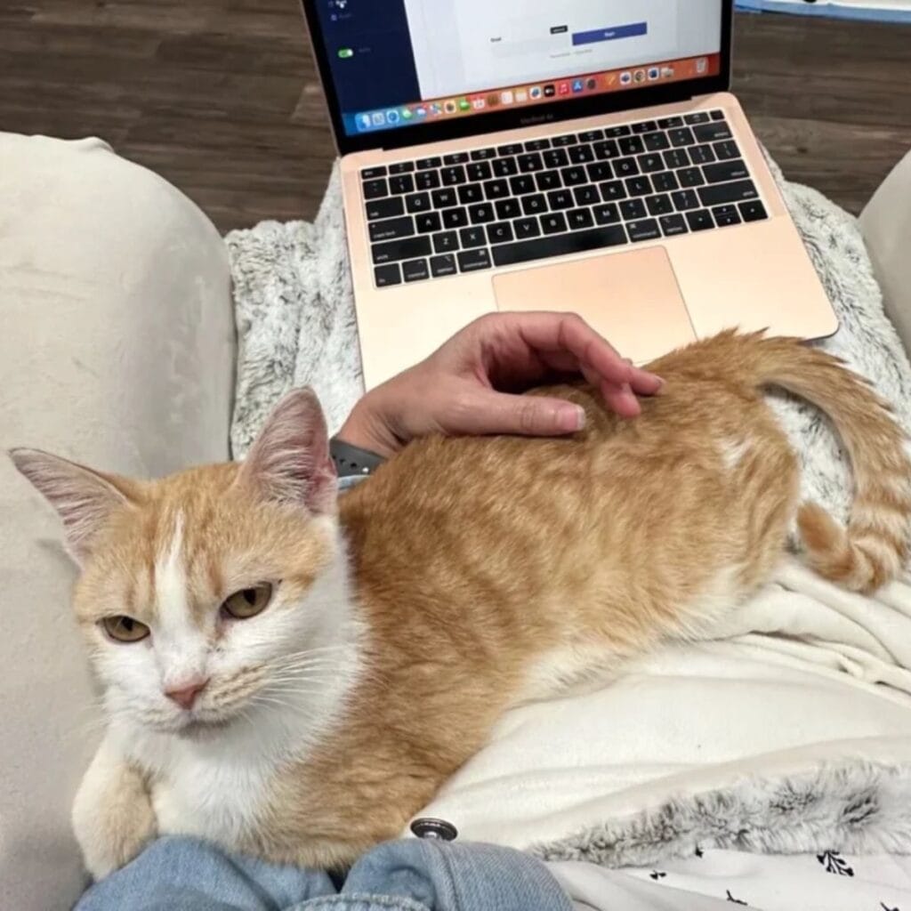 Lori describes Marigold as a quirky, affectionate cat who fills the room with warmth.