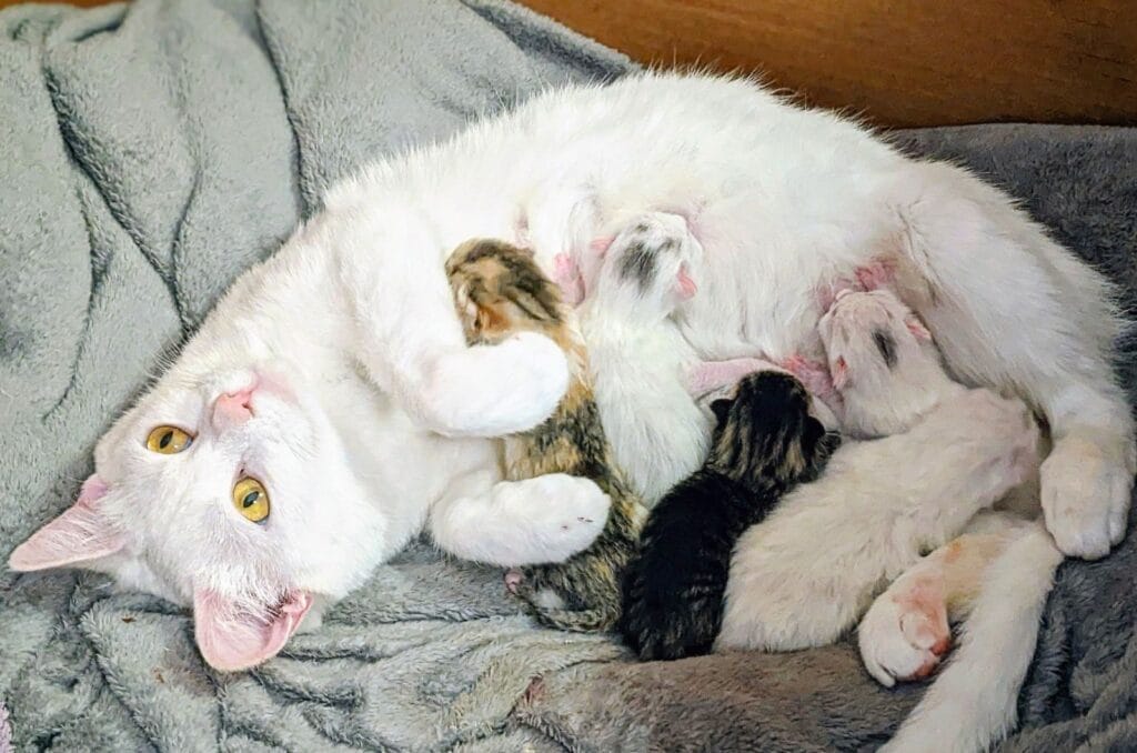 She wasn’t just trying to survive for herself, she had two tiny white kittens who depended on her for everything.